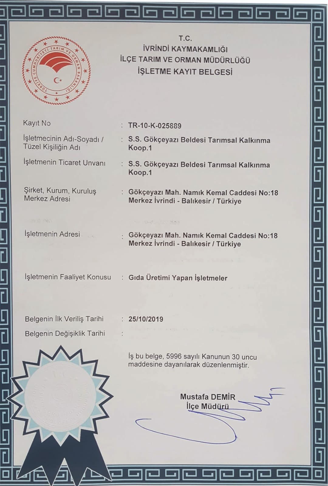 İşletme Kayıt Belgesi